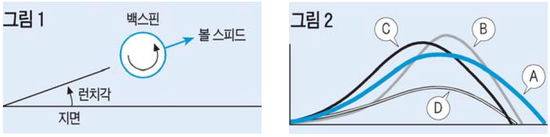 타이틀리스트 퍼포먼스센터의 클럽 피팅은 볼 스피드,런치각,백스핀량 등 3가지를 보면서 이뤄진다. 최적의 볼 비행은 그림 2의 A처럼 초기에 높은 런치각과 낮은 스핀,완만한 하강 비행각을 갖고 있어야 한다.