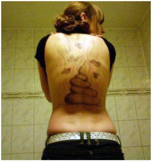 친구와 바람을 핀 여자친구의 등에 실감나는 대변 문신을 새긴 한 예술가가 화제가 되고 있다고 영국 더선 등 외신이 29일(현지시간) 보도했다.