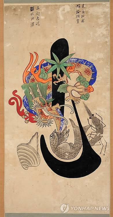 (서울=연합뉴스) 조선시대 문자를 소재로 한 그림인 문자도(文字圖) 중 충(忠)을 표현한 그림. 당시 사대부들이 중요시한 8가지 덕목 효제충신예의염치(孝悌忠信禮義廉恥)를 표현한 것 중 하나로서도 충(忠)의 상징물로 등용문(登龍門) 고사를 그렸다. 국립민속박물관이 마련한 임진년 용띠해 특별전에 선보인다. 2011.12.11 < < 문화부 기사참조, 국립민속박물관 제공 > >