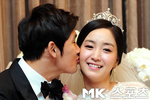 성남일화 소속 축구선수 조동건과 탤런트 한송이가 11일 오후 서울 송파구 롯데호텔에서 웨딩마치를 울렸다.