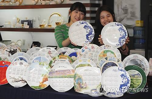 (서울=연합뉴스) 한국도자기는 13일 서울 청계천 사옥에서 2012년 '임진년' 새해 달력접시 출시를 기념해 지난 수십 년간 선보였던 역대 달력접시를 함께 전시한다.