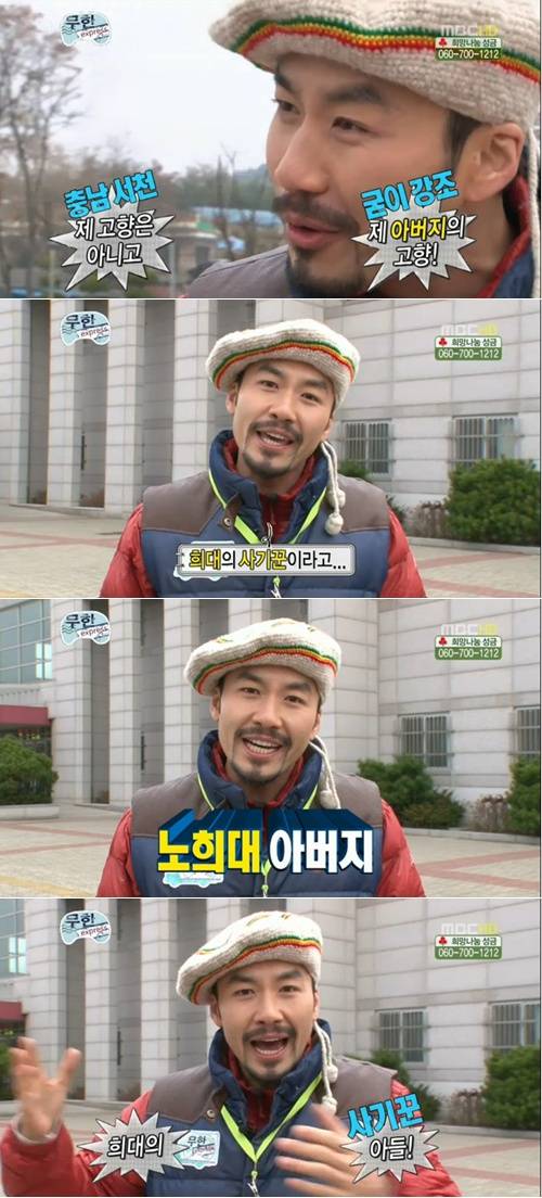 충남 서천에 도착한 노홍철은 '아버지의 고향'임을 강조하며 "이런 표현이 있다. 희대의 사기꾼이라고. 우연인지 필연인지 저희 아버지 함자가 노희대다. 희대의 아들"이라고 밝혀 웃음을 자아냈다.