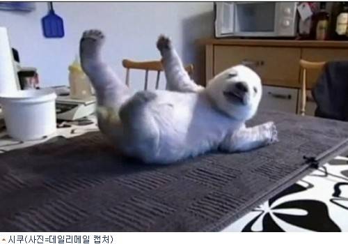 깨물고 싶은 새끼 북극곰 시쿠..'배 볼록' 깜찍 영상 화제