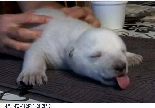 덴마크 야생 동물공원에서 자라고 있는 태어난지 1달된 새끼 북극곰 시쿠가 새로운 깜찍 동물 스타로 떠올랐다고 23일 영국 매체 데일리메일 등 외신들이 전했다.