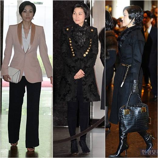 다른 행사장에서는 아방가르드한 패턴의 블랙 코트를 입어 럭셔리한 무드를 냈기도 했으며 2일 신년 하례식에서도 올 블랙 패션을 입어 시크한 재벌가 포스를 드러냈다. 또한 신년 패션으로 장갑, 벨트, 가방 등 작은 블랙 액세서리에서도 포인트가 되는 디테일의 제품을 선택했다. (사진출처: 한경닷컴)