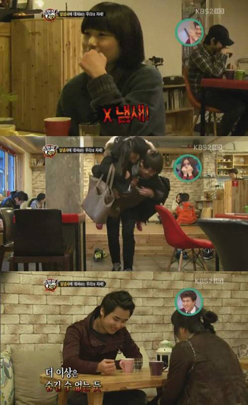 이에 해당하는 커플은 좌식 카페를 찾았고, 공간을 가득 채운 발냄새를 감지한 남자는 이윽고 냄새의 원인이 사랑하는 그녀라는 사실을 알아낸다. 남자는 여자친구에게 단도직입적으로 "샤워 안했냐"고 묻더니 급기야 "X냄새 난다. 내 코를 잘라버리겠다"며 격한 반응을 보여 웃음을 자아냈다.