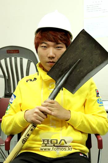 - 1경기에서 김민수에 비해 킬 수가 몹시 적었는데▶ 못할 수도 있다(웃음). 난 STX와 웅진 같은 강팀에게 강하다. SK텔레콤에겐 졌지만 큰 경기에 강한 사람이 되고 싶다. 숙소에서 (김)민수와 '부부'로 불리고 있는데 잘 지내고 있다. 민수가 딱히 싫어하는 내색은 없다.