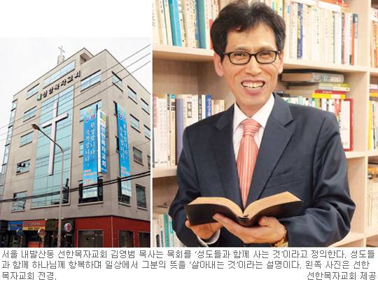 서울 내발산동의 선한목자교회 담임 김영범(54) 목사는 늘 '목회'가 '먹회'로 끝나지 않기를 바라며 기도한다고 한다. 예장 합동 소속인 그는 수많은 선배 목회자들을 보니 선한 의도, 불붙는 구령의 열정으로 시작한 '목회'(牧會)가 돈과 명예, 탐욕으로 인해 '먹회'로 끝나는 경우가 너무나 많았다고 안타까워했다.