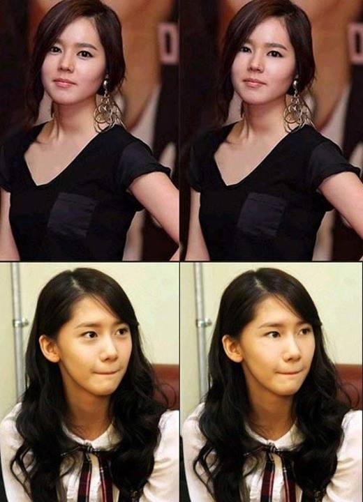 공개된 사진 속에는 윤아와 한가인이 아름다운 미모를 자랑하는 모습과 포토샵으로 눈 밑 애교살을 제거한 모습이 비교돼있다. 특히 눈 밑 애교살을 없앤 사진 속 윤아와 한가인은 급격한 노화로 부자연스러운 모습을 띄어 눈길을 끌었다.