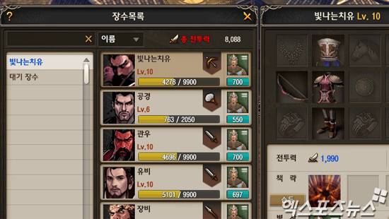 ▲ 게임을 진행하면 여러 장수가 합류하며 원하는 장수를 전투에 출전시킬 수 있다