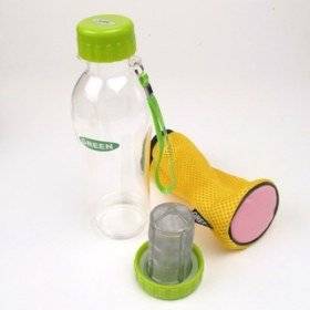 해피툴 여행용 티포트는 폴리카보네이트 재질 물병 형태로 위쪽은 일반적인 물병과 동일하게 돌려서 여닫는 뚜껑이 달렸다. 아래쪽엔 분리할 수 있는 차 필터가 달려있어 찻잎이나 티백을 넣도록 되어 있다. 차 필터는 돌려 잠그는 형태로 고무 패킹이 달려 있어 내용물이 새지 않는다. 뚜껑 옆에는 줄 손잡이도 달았다. 용량은 580mℓ이고 가격은 인터넷 최저가 기준 1만 2,000원이다.