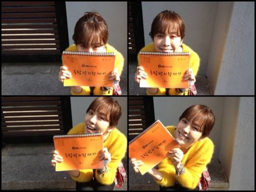 공식 페이스북을 통해 공개된 사진에는 그녀가 봄빛을 닮은 노란색 니트를 입고 대본을 손에 쥐고 해맑게 미소 지으며 찍은 셀카 4종 세트이 담겨 있다. '옥탑방 왕세자'의 바쁘고 힘든 촬영 중에도 웃음을 잃지 않은 상큼한 모습이다.