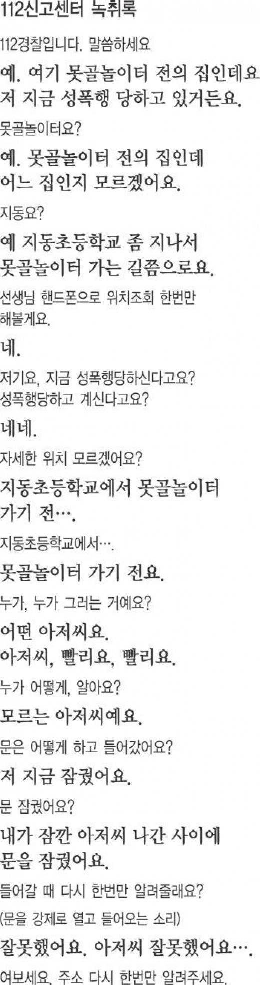 이런 가운데 경찰은 6일 수원 살인사건 녹취록을 공개했다. 녹취록에 따르면 피해자 A씨는 범인 오 씨가 자리를 비운 틈을 타 전화를 했으며, 자신의 상황과 지역을 비교적 자세하게 설명했지만 전화를 받은 112 센터 경찰은 "범인은 누구냐" 등 답답한 질문만 할 뿐이었다.