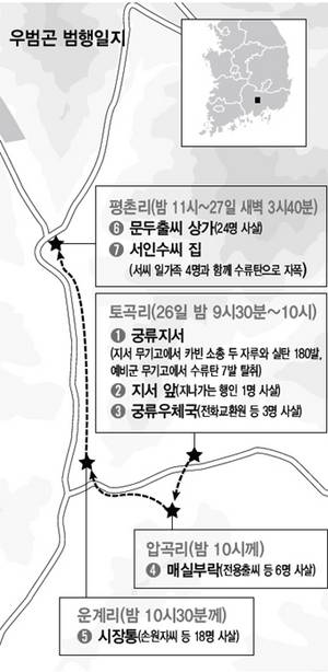 청와대서 궁류지서로 좌천인사불만에 주벽, 난폭한 성격…4개 마을 돌며 카빈총 난사반나절새 56명 죽고 35명 총상
