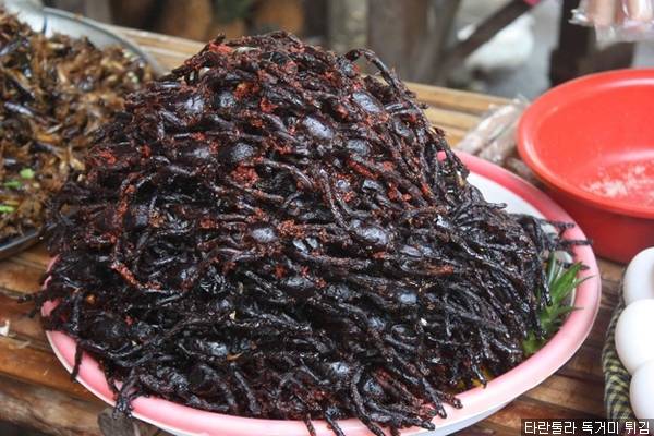 DHA 등 각종 영양소가 많아 머리를 맑게 해준다는 참치 눈알을 비롯 필리핀의 건강식품 발룻(Balut)도 보인다. 발룻은 부화 직전의 오리알을 삶아 만든 음식이다. 우리나라에서도 먹는 소의 생식기 요리도 보인다. 이 외에도 박쥐와 독거미 튀김이나 귀뚜라미 수프, 암모니아 냄새가 난다고 알려져 있는 열대 과일 두리안 등도 눈길을 끈다. 안지은 리포터 [출처=버즈피드]