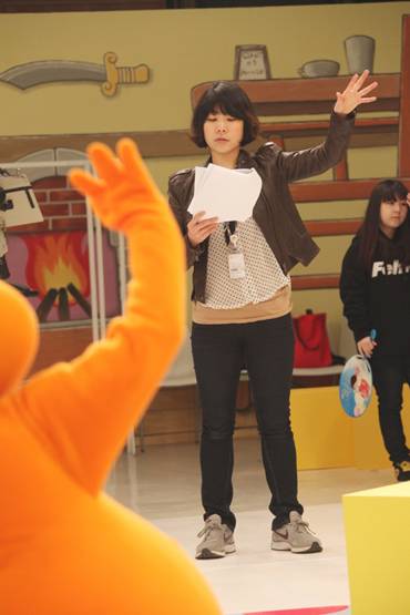 박PD가 촬영에 앞서 뿡뿡이의 동선과 몸짓을 확인하고 있다. 이치열 기자 truth710@ |