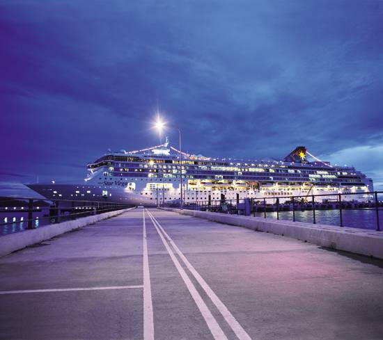 첫 날의 미션은 '안전하게 배에 오를 것'. 아침 비행기로 6시간을 날아 도착한 싱가포르 창이공항에서 20분을 달려가니 하버프런트 크루즈 선착장이 나왔다. 7만6,800t의 대형 크루즈 슈퍼스타버고 호가 손님을 기다리고 있었다. 길이 268m 폭 32m의 이 배는 총 13층에 객실이 935개로, 최대 1,870명까지 수용 가능하다.