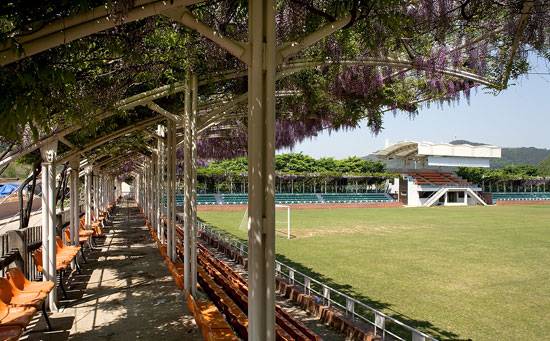 공설운동장의 중앙엔 푸른 잔디밭이, 의자가 놓인 사면의 스탠드 위에 등나무가 빼곡히 자랐다. 4월 말에서 5월 초에 만개하는 보라색 등꽃은 봄날의 장관이다. "행사 때마다 주민들의 참석률이 낮은 이유가 뜨거운 햇볕 때문이었대요. 서울로 돌아오는 버스에서 3시간 만에 스케치를 마치셨죠." 하늘로 뻗쳐 제멋대로 자라던 등나무가 살 집을, 그는 등나무와 같은 굵기의 철봉으로 엮어 만들었다. '건축은 홀연히 사라지고 자연이 오롯이 주인공으로 남은' 이곳엔 시원한 그늘을 드리우는 등나무와 드문드문 남아있는 등꽃이 뒤늦게 찾아온 방문객을 맞이하고 있었다.
