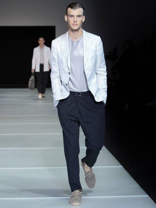 품이 좁아진 만큼 재킷과 바지도 조금 짧은 느낌으로 입으면 어울린다. 이탈리아 슈트의 대표격 조르지오 아르마니의 올봄ㆍ여름 컬렉션에서도 발목까지 오는 짧은 기장이 여전히 '강세' 였다.