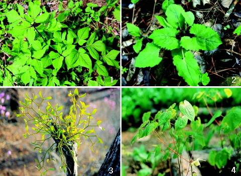 ↑ [월간산]1 참나물 2 취나물 3 겨우살이 4 삼지구엽초 |
