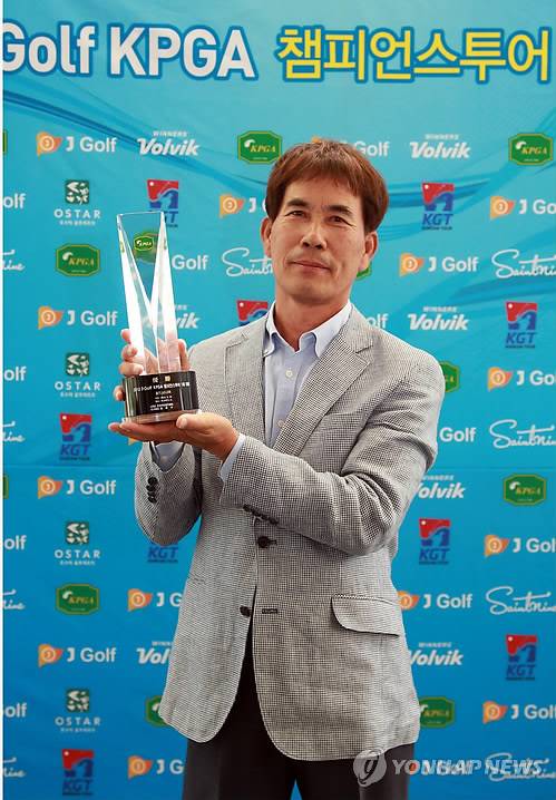 (서울=연합뉴스) 22일~23일 이틀 동안 오스타G.R. 남코스 (파72, 6,638야드) 에서 열린 J-Golf KPGA 챔피언스투어 1회 대회 그랜드시니어부문에서 우승을 차지한 문춘복이 트로피를 들고 기념촬영 하고 있다. 2012.5.23