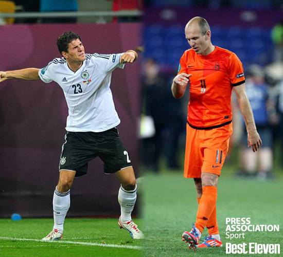 포르투갈 유로 2004 조별 라운드네덜란드 1-1 독일득점 : 루드 반 니스텔로이(후반 36분 이상 네덜란드), 토어스텐 프링스(전반 30분 이상 독일)