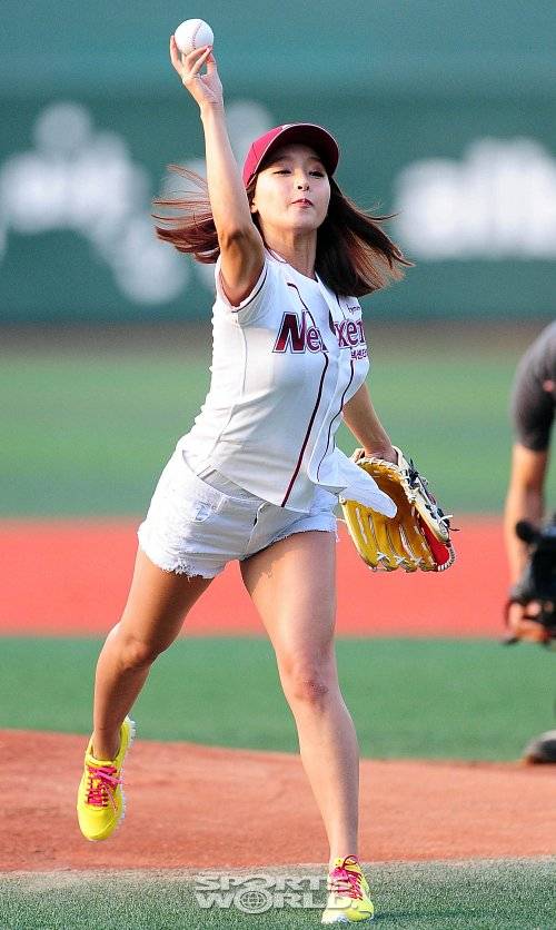 가수 김소리가 13일 목동구장에서 열린 넥센과 KIA의 경기에 앞서 시구를 하고 있다./목동=김두홍 기자 kimdh@sportsworldi.comt