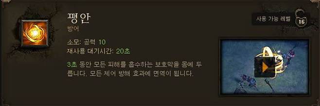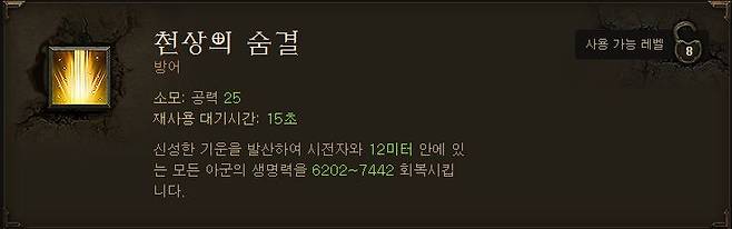 때문에 수도사는 지옥난이도 이상에서는 생존기를 우선순위에 두고 기술을 사용해야 하며 생존기를 어떻게 사용하느냐에 따라 게임의 난이도가 크게 달라진다.