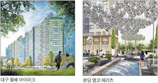 [인사이드 Story] 주택에도 '튀는 디자인' 바람대구 월배 아이파크, 격자무늬 옷감 형상화분당 엠코 헤리츠, 단지 한복판 카페 거리롯데캐슬 프레지던트, 삼각뿔 모양 단지 형태로