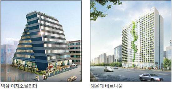 오피스텔, 도시형 생활주택 등 수익형상품도 예외가 아니다. EG건설이 최근 서울 역삼동에 분양한 도시형 생활주택 '역삼 이지소울리더'는 피라미드를 연상시키는 모양으로 설계돼 있다. 3개 동이 서로 비스듬히 맞물려 있어 독특한 외관을 뽐낸다.