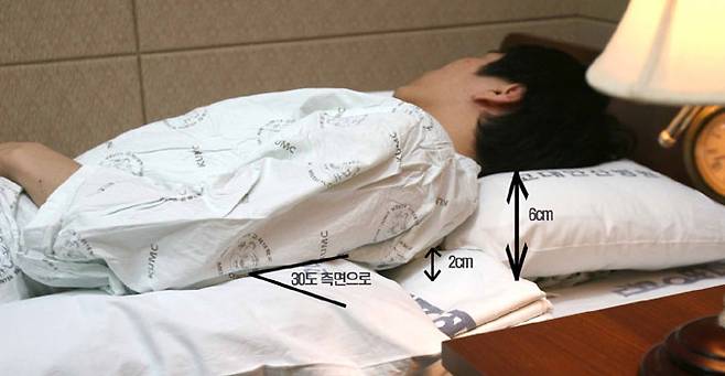 6~8cm 베개, 30° 몸 기울여 자면 코골이, 무호흡 굿바이