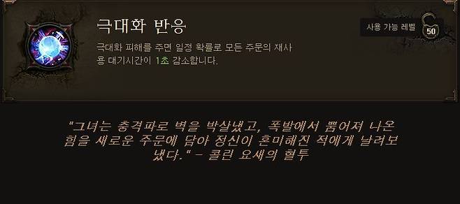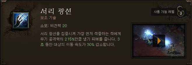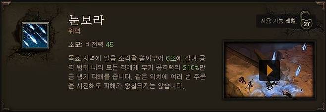 이외에도 다양한 기술이 많지만 일반, 악몽 난이도를 진행 할 때 마법사는 어떤 기술을 주로 사용하더라도 큰 무리가 없이 게임을 진행 할 수 있으며, 레벨 21대 사용할 수 있게 되는 파열과 히드라 기술을 사용한다면 조금더 수월하게 게임을 진행할 수 있다.
