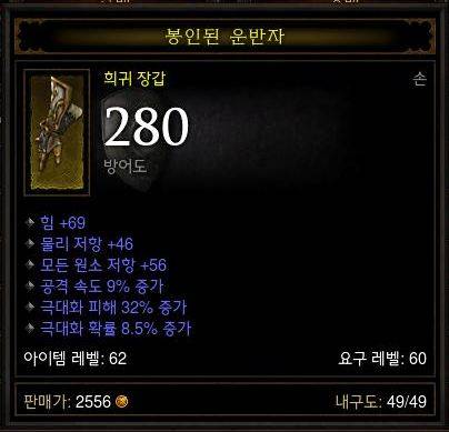 10. 장갑- 1.공격속도 2.극대화 피해 3.극대화 확률 4. 모든 저항