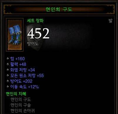 8. 장화- 1.이동 속도 2.모든 저항 3.물리저항 4. 초당 생명력 회복