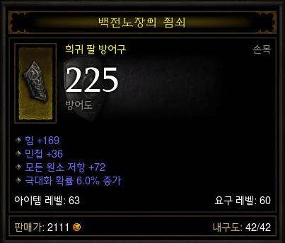9. 팔 방어구- 1.극대화 확률 2.모든 저항 3.물리 저항 4. 초당 생명력 회복