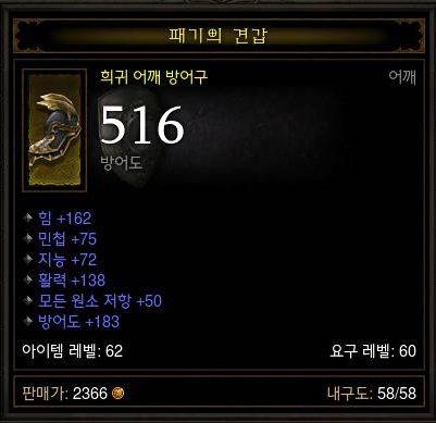 11. 어깨 방어구- 1.추가 생명력 2.모든 저항