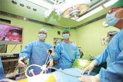 대장암 치료의 중심은 수술이다. 고대안암병원에는 대장·직장암 수술 권위자 김선한 교수(외과)가 있다. 국내에서 배를 열고 수술을 하던 시절에 미국으로 건너가 복강경 수술을 배웠다. 이후 현재까지 2만 건 이상의 복강경 대장암 시술을 집도하며 이 분야의 발전을 선도했다.