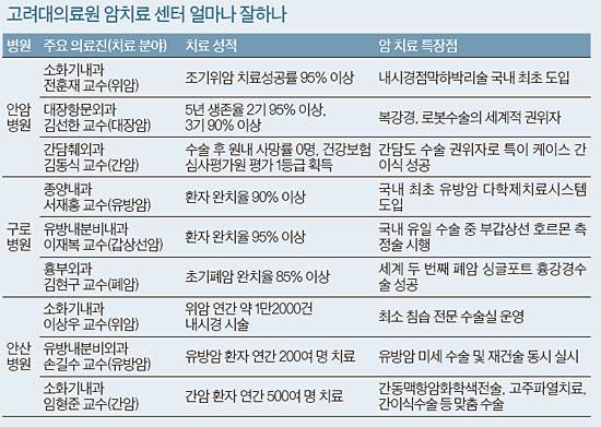 지난 5월 건강보험심사평가원은 위암·대장암·간암 한국인 3대 암에 대한 의료기관별 사망률 평가 보고서를 냈다. 고려대학교병원은 세 개 암분야 모두 1등급을 받으며 국내 최우수병원으로 우뚝 섰다. 안전한 수술, 그리고 난도 높은 수술에 대한 다수의 임상 사례가 반영된 덕분이다. 고대안암병원·고대구로병원·고대안산병원 3개 병원이 선도하고 있는 암치료 분야를 살펴봤다.