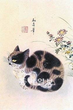 변상벽(생몰연도 미상)의 '국정추묘도'. 국화가 핀 뜰 안의 가을 고양이 그림이다. 변상벽은 숙종 때의 화가5로 고양이를 잘그려 별명이 '변고양이'였다. |