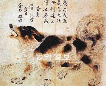 김두량(1696∼1763)의 '삽살개'. 영조 임금이 그림 위에 손수 글을 썼다고 전해진다. |
