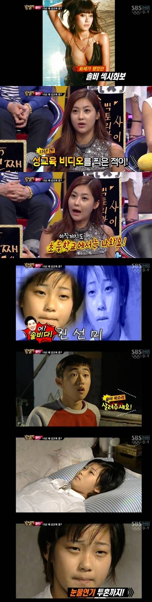 솔비는 7월17일 방송된 SBS '강심장'에서 "내가 이상하게 성에 어필하는 매력이 있다. 섹시 화보도 내가 찍으면 대박이 나고 15년 전 성교육 비디오도 찍은 적이 있다"고 고백했다.