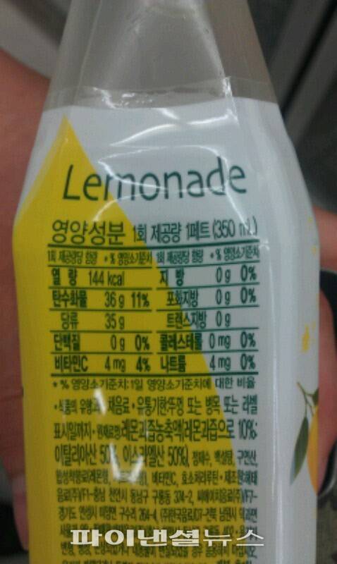 비타민C 과일의 대표주자 레몬으로 만든 레모네이드의 비타민C 함유량은 오렌지주스보다 적은 350mL당 4㎎에 그쳤다. 250mL 기준 약 2.86㎎에 불과하다.