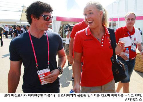 지난 주 잉글랜드 랭커셔에서 열린 브리티시오픈에서 공동 60위의 부진한 성적을 냈던 맥길로이는 곧바로 런던으로 이동해 워즈니아키와 만났다. 그리고 선수촌인 올림픽 빌리지에 함께 모습을 드러냈으며 27일 개막식에 이어 이날 첫 경기를 함께 했다.