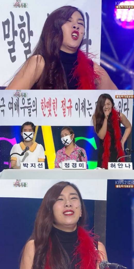 29일 방송된 KBS 2TV '개그콘서트-희극 여배우들'에서 허안나는 자신을 에로배우 캐릭터로 만든 '개콘' 제작진을 고소한다고 입을 뗐다.