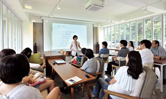 스크린이 내려오고 빔 프로젝터가 켜졌다. 이날 주제는 '제니퍼인들의 건강한 마음과 행복한 삶을 위한 심리학 강의'다. 심리학 전문가인 이민희 박사가 스트레스 관리와 감정 조절, 육아와 자녀 교육에 대한 이야기를 풀어놓았다. 중간 휴식 시간에는 떠들썩한 수박 파티도 벌어졌다. 회사는 직원들을 위한 외부 초청 강연을 자주 마련한다. 바리스타 실습, 스케치 강좌, 철학 강의 등 주제도 다양하다.