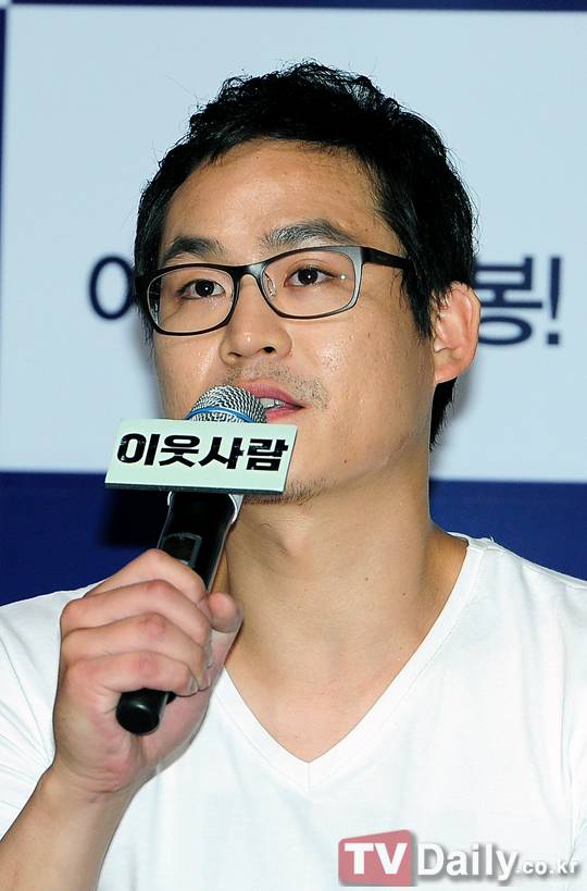 이날 '이웃사람' 제작발표회에 참석한 배우 김성균이 질문에 답하고 있다.