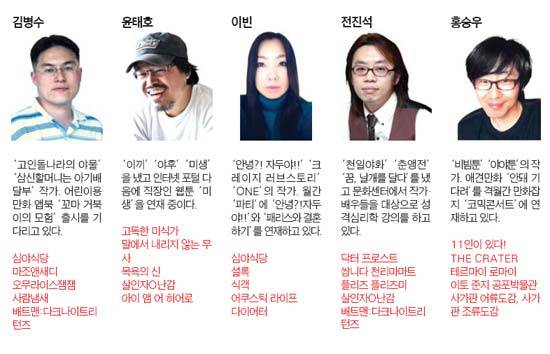 만화라는 장르의 저력에 새삼 감탄하며, 인기 만화가 5명에게서 읽을 만한 만화 5권씩 추천(이유까지) 받아 기분에 맞춰 볼 수 있게 분류했다. 선정 기준은 교양을 풍부하게 해주는 것도, 예술적이고 창의적인 감성이 넘치는 것도, 인류의 지적 성취를 보여주는 것도 물론 아니다. 메시지가 있을 것 그리고 무엇보다 찜통 더위를 잊어버릴 만큼 재미있어야 할 것, 딱 두 가지다.