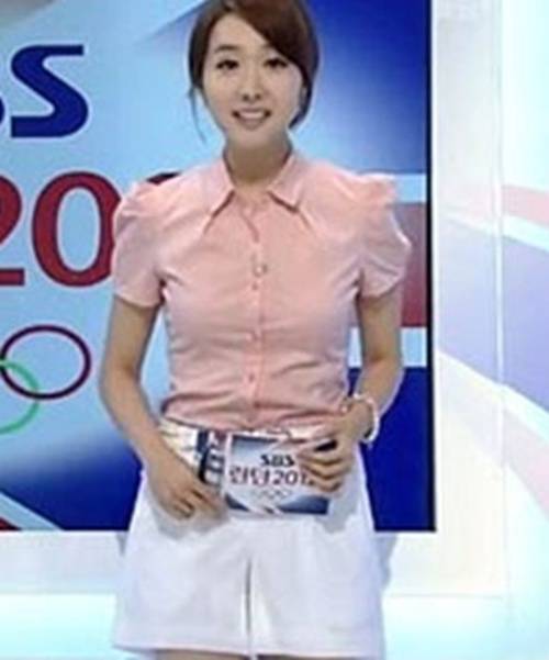 김민지 아나운서는 지난 6일 오후 방송된 올림픽 특집 방송에서 남자 체조 도마에서 금메달을 딴 양학선 선수의 프로필을 소개했다. 이때 김민지는 분홍색 블라우스에 하얀 바지 차림이었다.
