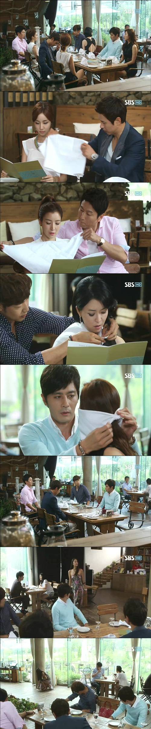 여자들이 모두 자리에 앉자, 최윤(김민종 분)은 짧은 치마를 입은 임메아리의 다리를 냅킨으로 가려주며 "에어컨 때문에 춥다."라고 말하는 모습이었다. 임태산(김수로 분) 역시 홍세라(윤세아 분)의 가슴 부위를 냅킨으로 감싸며 "음식 흘릴까 봐!"라고 변명했다.
