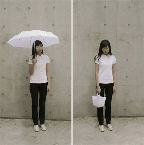◆ 접으면 '손가방'되는 우산 =한국 디자이너 손승혜가 디자인한 이 우산은 접으면 작은 가방이 되는 우산이다. 접이식 우산이라 해도 고리가 작아 불편했던 사람들에게 유용하다.